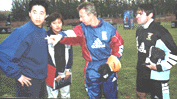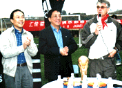 北京汇佳猎豹足球俱乐部是由王志泽先生、吕丽萍女士、陶伟先生共同出资创办的股份制俱乐部。 汇佳猎豹足球俱乐部董事长由王志泽先生兼任,著名演员、群星表演艺术学校校长吕丽萍任董事,原国安队、全兴队足球队员、国家中级教练、国安绿茵传真佳宾主持人陶伟先生任董事兼负责人……请看详细介绍…… ![]() 10月27日,曾率领法国国家队在世界杯上一举夺魁的金牌教练雅凯,来到位于京郊昌平的北京汇佳学校参观.陪同前来的还有亚足联副主席张吉龙以及长时间致力于青少年球员培养工作的著名教练阿尔弗瑞德.11:00点,雅凯饶有兴趣地观看了汇佳猎豹足球俱乐部小队员们的训练,当训练课进行到最后-所有队员分为黄白两队比赛时,凯雅先生让工作人员把足球鞋拿来,决定加盟到黄队去,他出任拖后中卫,他凭自己出色的控球和准确的中长传来组织“队友”发起进攻,每当小队员完成一次射门时,凯雅都大声的喊:“好样的!”即使有队员控制球失误时,他也与之击掌以示鼓励,同时安慰道:“胆大些,再来!”比赛最终以白队获胜而宣告结束,这时凯雅又非常认真地把带来的“大力神杯”颁发给获胜的一方,并和小队员合影留念。 左一:汇佳学校董事长王志泽先生 右一:剀雅先生 凯雅先生、汇佳学校董事长王志泽先生、汇佳猎豹足球队教练陶伟先生、吕丽萍女士与我校汇佳猎豹足球队合影。 |